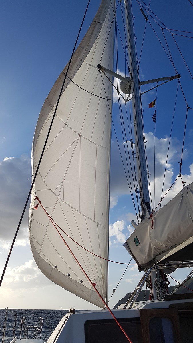 Sailing along on the Genoa alone, somewhere around Diamond Rock.