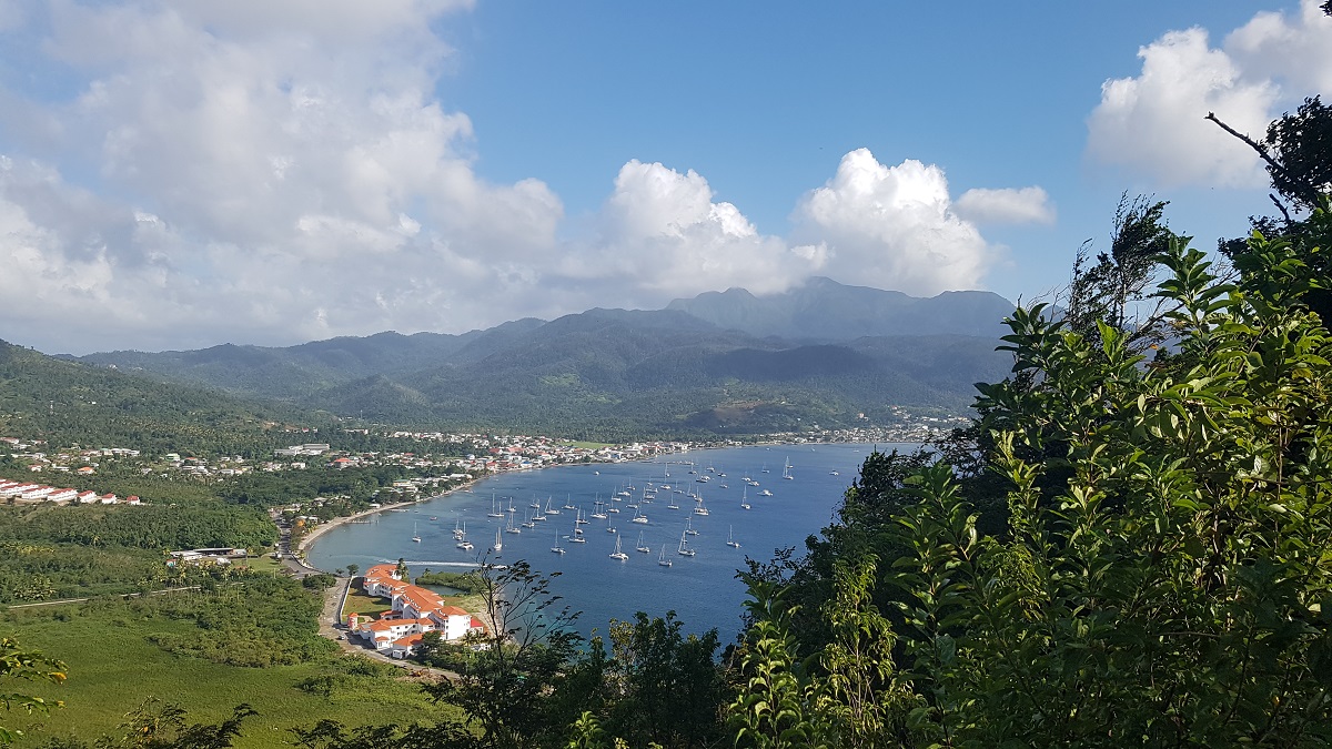 The view on Prince Rupert's Bay from the top of Cabrits. Diablotin volcano hides in the clouds on the background.