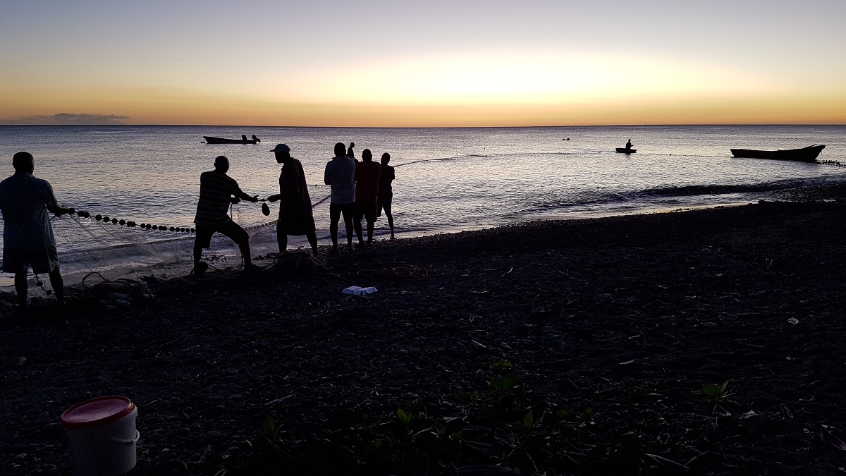 Fishermen in Saint Pierre bringing in their nets at the end of the day.