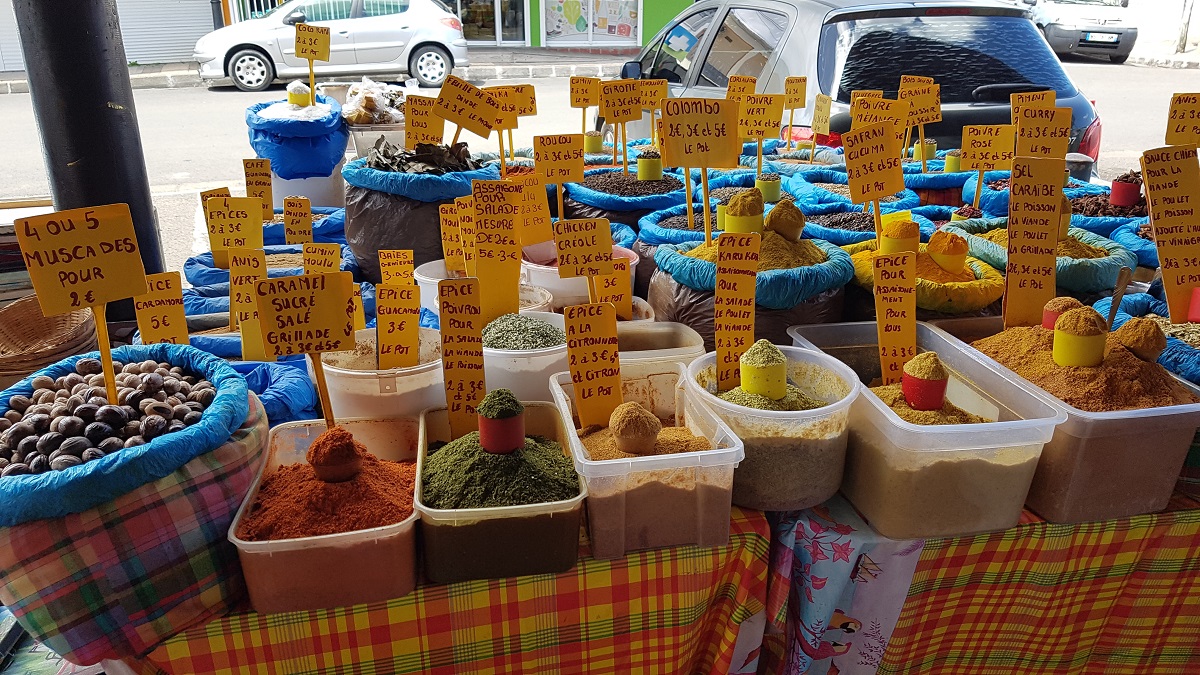 Overpriced spices in the 'tourist trappy' Marché de la Rotonde in Saint-François.