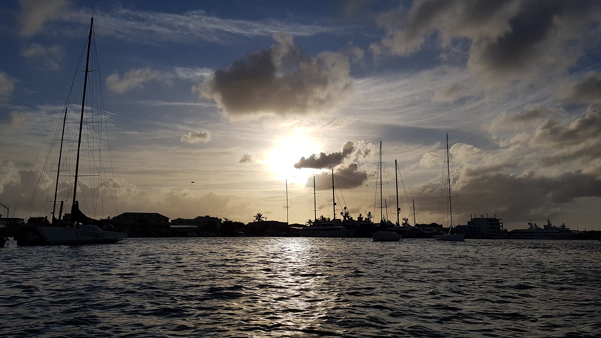 The last sun on our dinghy tour of the Simpson Bay Lagoon where we gawked at all the superyachts lying here as well as the hurricane wrecks dotted around the area.